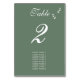 A beautiful elegant formal script typography wedding design with a sage olive green background colour. A unique design that uses a personal classic calligraphy wedding invitation font and a hand drawn greenery leaf branch. A formal script calligraphy design with tones of sage olive green. An elegant wedding table number card design with classic traditional elements. Matching wedding invitations and other stationery items are also available. Customise the number and purchase each tables number individually according to how many table numbers you need.