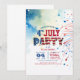 At the heart of the design lies the iconic American flag, seamlessly incorporated into the letters spelling out "party." This subtle yet impactful detail pays homage to the spirit of freedom and unity that defines this special occasion. Whether you're hosting a backyard barbecue or a sophisticated soirée, our invitation sets the stage for an unforgettable Fourth of July celebration.