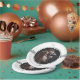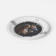 These elegant wedding paper plates feature a round, black frame surrounding your personal photo, with matching geometric lines and modern text on a white background. A minimalist and stylish design.