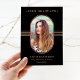 These elegant 2023 graduation announcement cards feature a rounded faux rose gold frame surrounding your personal photo, with matching geometric lines and modern text on a black background. You can easily change the wording on the back of the card to make it either a graduation announcement or a grad party invitation. The design is stylish yet professional enough to be perfect for either a high school or college university graduate.