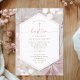 Announce your little girl’s baptism with unmatched elegance and charm. This stunning invitation features a soft watercolor floral background in dreamy pastel hues, creating a serene, angelic atmosphere. At the heart of the design, a sophisticated white diamond-shaped frame draws the eye to your personalised text, brought to life with a graceful mix of flowing calligraphy and timeless serif lettering. The result is a beautifully balanced, heirloom-worthy piece that feels both delicate and refined.