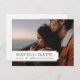 Chic modern vintage photo postcard wedding Save the Date. Design features your engagement photo with an elegant simple tab frame overlay and space for your wedding date and bride and groom's names on the front. Stylish mix of traditional and script typography on the back side and a trendy vintage inspired frame around the address. Add a message or more information for guests in the space on the back. Use the design tools to customise fonts and move text around to create your own unique one-of-a-kind Save the Date postcard design.