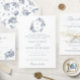 Elegant French Roses Floral Blue Crest Wedding Invitation