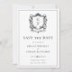 Elegant French Roses Floral Monogram Crest Wedding Save the Date card in timeless black and white features a formal vintage monogram crest accented with French roses, classic typography, and a delicate frame.