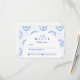 An elegant graduation celebration design featuring a delicate blue toile floral border inspired by classic European porcelain and vintage botanical prints. The intricate florals frame a clean arched center panel, creating a refined and timeless composition that highlights the graduate’s name and event details beautifully. Soft blue tones against a crisp ivory background give the design a sophisticated yet celebratory feel. Perfect for a stylish graduation gathering with a classic, romantic aesthetic.