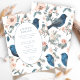 Elegant French Vintage Blue Birds Blush Floral Chinoiserie Wedding Invitation.