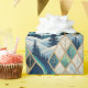 An abstract diamond pattern featuring a blue, green, and gold frozen winter landscape.