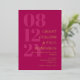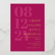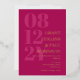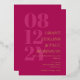 Elegant typography wedding invitation in fuchsia pink with your wedding date in large numbers down the side of the invitation. Add names and wedding wording in gold foil. Gold foil and dark pink wedding invitation with your names in a large font.