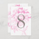 Elegant and romantic peony wedding table number card in fuchsia pink and pewter grey colour scheme. Design is featured on front and back sides of the card. Customise and add each individual table number to your shopping cart.