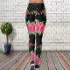 Elegant Fuchsia Pink Rose Flower Black Leggings