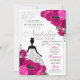 Elegant Fuchsia Pink Silver Floral Quinceanera Birthday Invitation