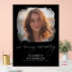 Celebrate the life of your loved one with this elegant "In Loving Memory" funeral sign. This black sign showcases a cherished photo, elegantly framed by a fading ink effect that gently dissolves the corners of the image. This unique design element adds a sense of depth and significance, enhancing the overall impact of the tribute. The text "In Loving Memory" is elegantly scripted, resembling a handwritten note. This modern and trendy font adds a simple yet deeply personal touch to the overall design. If you are seeking something truly special and unique for your memorial service, look no further. This funeral photo sign combines sophistication, elegance, and heartfelt emotion to create a fitting tribute to your loved one.