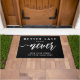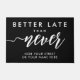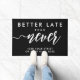 Greet your guests with humour and style using this Funny Welcome Doormat. Featuring a modern white handscript font on an elegant black background, the playful message "Better Late Than Never" adds a fun twist to any entryway. This customisable doormat allows you to personalise it with your own text, such as your address or any message you'd like to display. Perfect for adding a unique, welcoming touch to your home decor while creating a friendly atmosphere. A practical and stylish way to greet visitors, this personalised welcome mat is an ideal gift for housewarmings or any occasion.