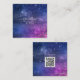 This square business card is featuring a purple ,artistic galaxy background ,elegant font with swashes . On the other side there is a QR code to be replaced with your one .
