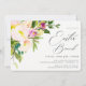 Elegant pastel watercolor botanical flowers and garden greenery frame, Easter Brunch invitation. Back of card features coordinating solid purple colour.