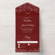 Elegant Garden Leaves Fall Winter Burgundy Red All In One Invitation