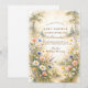 A soft watercolor meadow blooms across the bottom of this elegant design, featuring delicate daisies, blush cosmos, buttery yellow florals, and airy blue wildflowers. The warm ivory background and refined gold typography create a graceful balance between rustic charm and timeless sophistication. Inspired by sunlit fields and gentle summer breezes, this design feels romantic, fresh, and effortlessly classic. Perfect for a garden-inspired celebration with a refined, storybook touch.