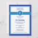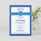 This elegant yet modern invitation is ideal to celebrate a Bar Mitzvah with style and class. It features a border in different shades of blue, a stripes banner across the card and a circle with the name initial. Add your own wording and event details.