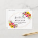 This beautiful, elegant design features bright floral bouquets with flowers in shades of coral, orange, pink, red, yellow and purple, along with a trendy copper geometric frame. The customisable text appears in popular script and serif typography. You can personalise this save the date postcard for your own wedding by changing the text in the template.