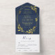 Elegant Geometric Modern Royal Blue Navy Wedding All In One Invitation