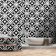 Transform your living space with this stunning black and white peel and stick wallpaper. The monochrome design features intricate black motifs on a crisp white background, creating a bold and elegant look. Perfect for any interior home renovation project, this wallpaper adds a touch of sophistication and drama to any room. The symmetrical floral-like shapes and diamond patterns with dotted details make it a versatile choice that complements both modern and traditional decor styles. Easy to apply and remove, it’s an ideal solution for those looking to refresh their home without the commitment of traditional wallpaper. Elevate your interior design with this eye-catching and timeless piece.