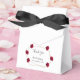This design features elegant red roses combined with a geometric gold colour frame. The gold geometric frame is surrounded by vintage red roses. The combination of red, black and gold colours creates a sophisticated, romantic and chic style. Elegant wedding favour box design with modern elements. The simple setup of the typography gives it a distinct style. Matching wedding invitations and other stationery items are also available.