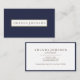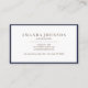 Simple and professional business cards featuring your name and title or occupation in the lower right corner, framed by a chic navy blue border. Add your contact information to the reverse side.