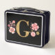Elegant Girly Pink Floral Monogram Metal Lunch Box
