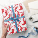 Chic elegant stylish feminine decorative swirl red and white floral pattern design, the cute girly retro modern floral pattern in teal blue, red and white give this elegant retro design a contemporary, unique and feminine look. Cool unique gifts for her. Custom the personalised monogram with your own initial and name, you can also click "customise it!" button under product photo to edit the colour and the font of the initial!