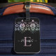 This personalised chic luggage tag has a girly gemstone diamond border with white text on a black background. Customise the luggage tag with the name of your choice to make someone feel extra special. Makes a fun gift for birthdays or for Christmas, or a gift for your best friend. Designed for you by Blackberry Boulevard.