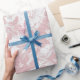 Elegant girly trendy pink coral white floral lace wrapping paper