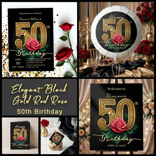 Elegant Black Gold Red Rose 50th Birthday PartyDesigned by Kristina Lj Petrovska