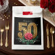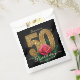 Add a touch of luxury and glamour to your milestone celebration with these elegant party favor bags. The design features a stunning contrast of a deep black background paired with ornate, faux gold foil typography for the number "50." A realistic, romantic red rose with green foliage accents the centerpiece, creating a sophisticated and classic look. These treat sacks are perfect for packaging candy, cookies, or small thank-you gifts for your guests. The template is set up for you to easily add the guest of honor's name and a personal message of gratitude. This design is ideal for a classy, floral-themed fiftieth birthday party for her.