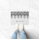 Elegant Glam Grey Linen and Black Lace Monogram Doormat