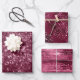 Elegant, glamourous, luxury Christmas holiday 3-sheet wrapping paper collection with sparkly and glittery purple designs.