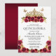 Elegant Glam Red Floral Gold Tiara Quinceanera Invitation