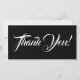 This elegant and glamourous thank-you card design features the message "Thank You!" in white coloured text on a black coloured background on the front, along with a customisable message on the back. It could be used to show gratitude to somebody who has done something nice.