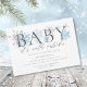 Baby, it's cold outside! This elegant baby shower invitation features a winter wonderland theme. It has a BABY accented with blue and silver watercolor and silver glitter snowflakes.