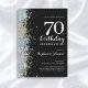 Elegant Glitter Black 70th Birthday Party Invitation. For a milestone birthday invitation with a touch of elegance, this design showcases a modern and sophisticated style with just the right amount of sparkle. The invitation features a background adorned with elegant glitter accents that catch the light beautifully. Modern typography highlights the celebrant's name and event details, creating a harmonious balance between contemporary design and timeless elegance. This invitation exudes a glamourous yet refined feel, perfect for celebrating a special milestone with grace and style.