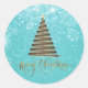 Elegant Glitter Blue Christmas Tree Classic Round Sticker