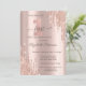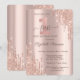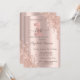 A modern, chic and glamourous invitation with glitter drips on a rose gold background.