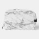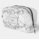 On this stylish dopp kit is a white and silvery classic marble pattern with silver glittery streams for a backdrop with an elegant silver lotus flower design where in the front you can personalise it with a name or logo creating a zen vibe.