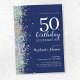 Elegant Glitter Navy 50th Birthday Invitation . For a milestone birthday invitation with a touch of elegance, this design showcases a modern and sophisticated style with just the right amount of sparkle. The invitation features a background adorned with elegant glitter accents that catch the light beautifully. Modern typography highlights the celebrant's name and event details, creating a harmonious balance between contemporary design and timeless elegance. This invitation exudes a glamourous yet refined feel, perfect for celebrating a special milestone with grace and style.