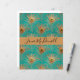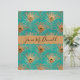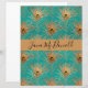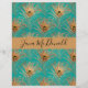 An elegant pattern of gold glitter peacock feathers on aqua background. Customise with name or other personal message