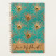 An elegant pattern of gold glitter peacock feathers on aqua background. Customise with name or other personal message