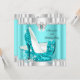 Elegant Glitter Teal Blue Glamour Hi Heels Silver Invitation