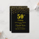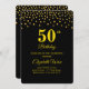 Elegant gold 50th Birthday Party Invitation. Gold metallic like header on black. Text ready to be personalised.