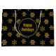 Elegant gold snowflakes on black Holidays Gift Bag. Text can be personalised.