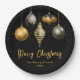 Elegant Gold and Black Ornament Christmas Paper Plate
