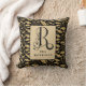A perfect house warming or host gift. This black and gold monogrammed R pillow features a classic leaf pattern.